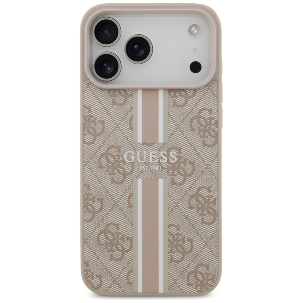 Citas preces Guess Guess 4G Printed Stripes MagSafe case for iPhone 17 Pro Max – pink