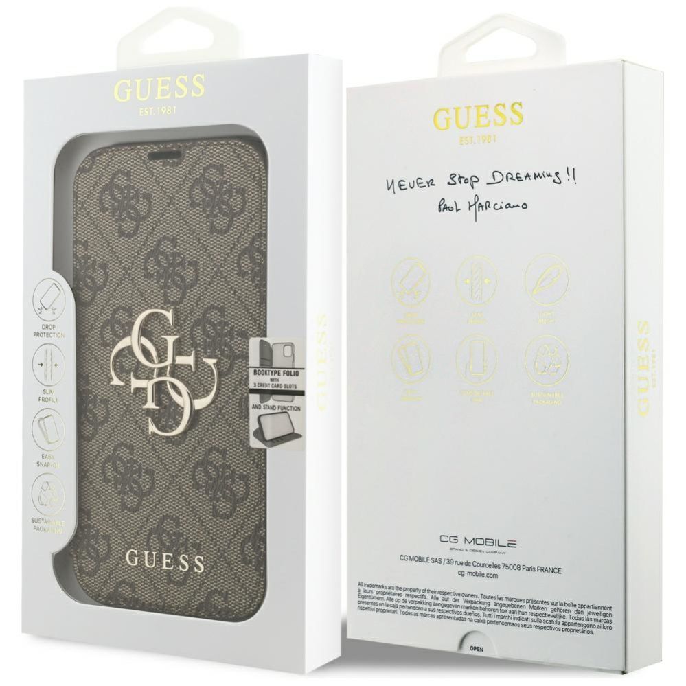 Citas preces Guess Guess Book 4G Metal Logo Case for iPhone 17 Pro – Brown