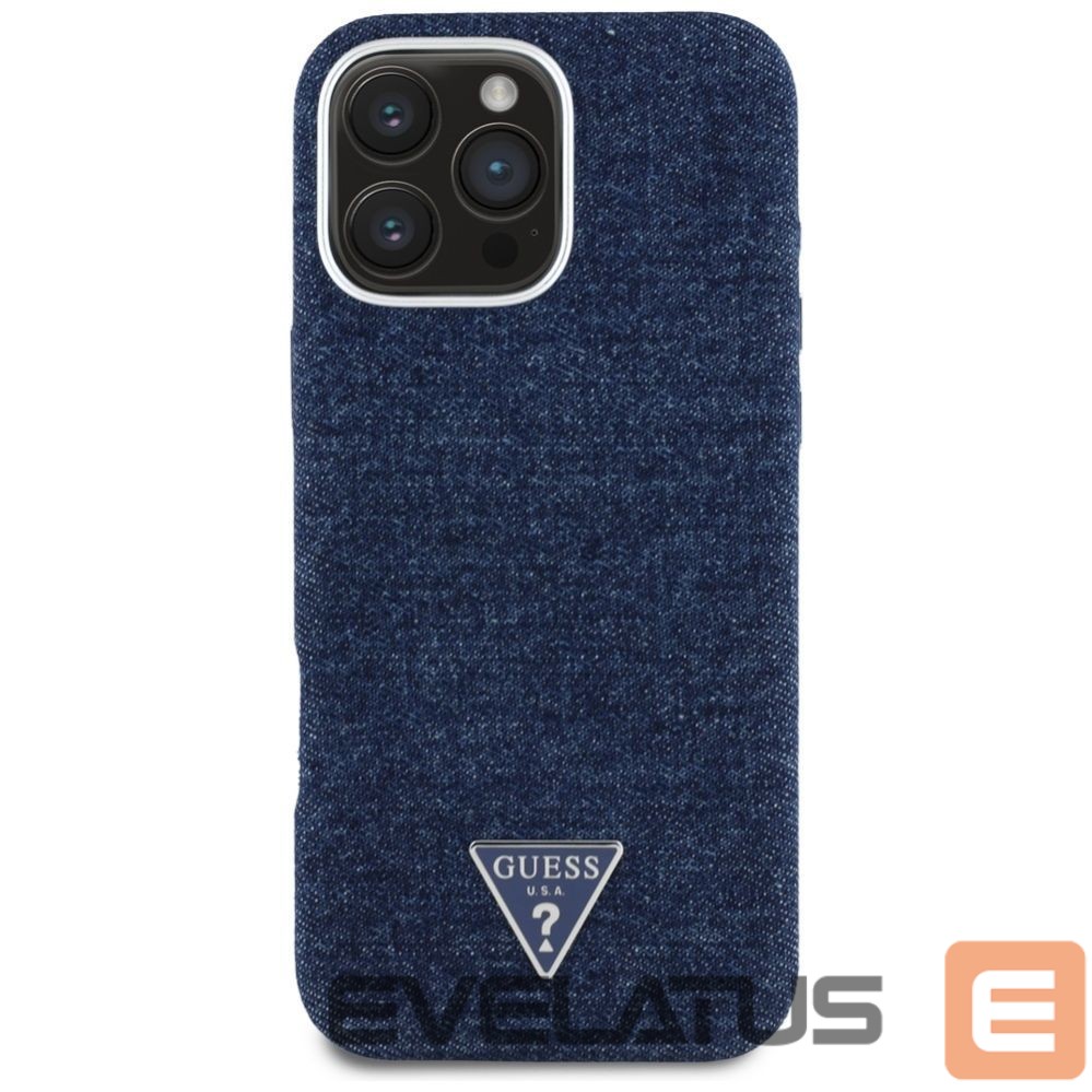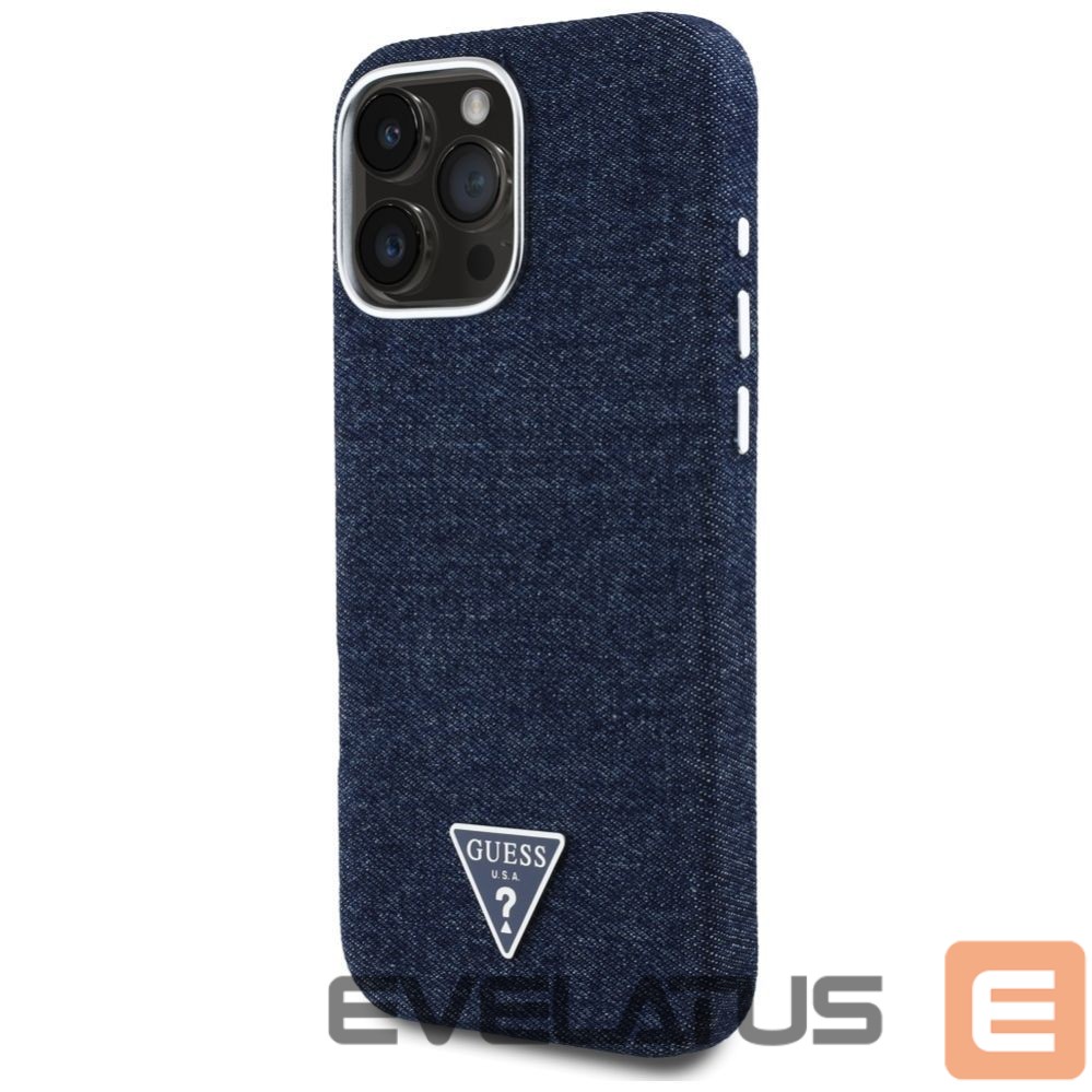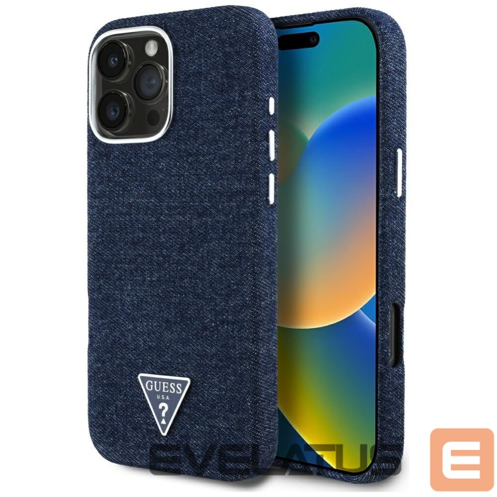 Citas preces Guess Guess Denim Triangle Logo MagSafe iPhone 16 Pro Max Case – Blue