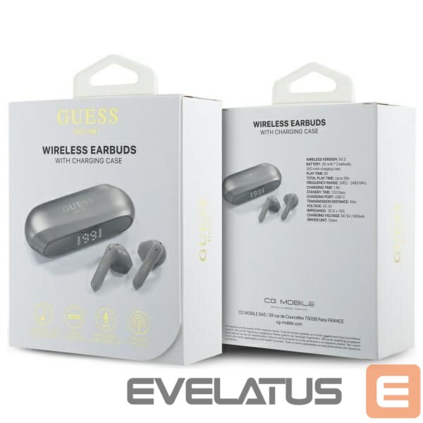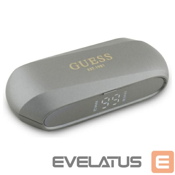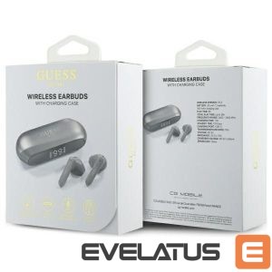 Citas preces Guess Guess Elongated Metalic Printed Logo Bluetooth TWS Headphones + Docking Station – Gray