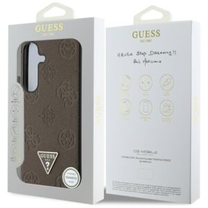 Citas preces Guess Guess Grained Hot Stamp Peony Pattern Triangle Logo MagSafe Case for Samsung Galaxy S25 – Brown