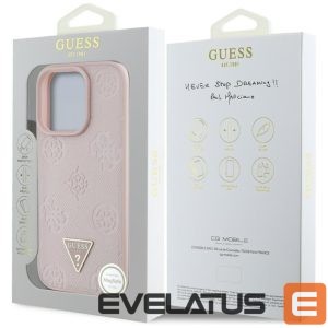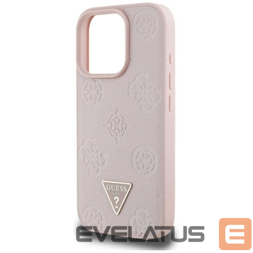 Citas preces Guess Guess Grained Hot Stamp Peony Triangle Logo MagSafe iPhone 16 Pro Max Case – Pink