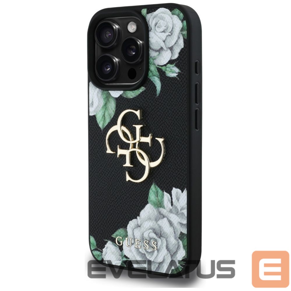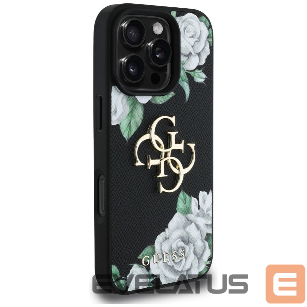 Citas preces Guess Guess Grained Roses Big 4G logo case for iPhone 16 Pro Max – black