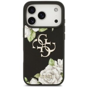Citas preces Guess Guess Grained Roses & Big 4G Logo iPhone 17 Pro Case – Black