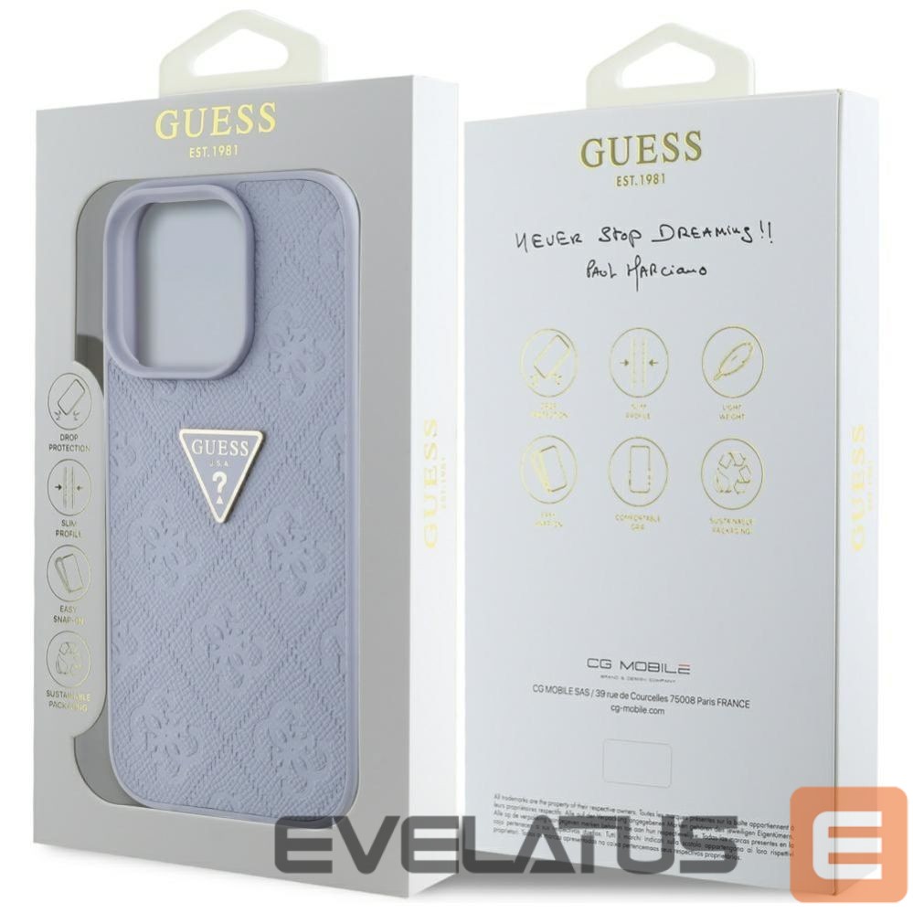 Citas preces Guess Guess Hot Stamp 4G Pattern Triangle Metal Logo Case for iPhone 16 Pro Max – Purple