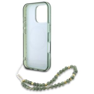 Citas preces Guess Guess IML Flowers Allover Electro With Pearl Strap MagSafe case for iPhone 16 Pro Max – green