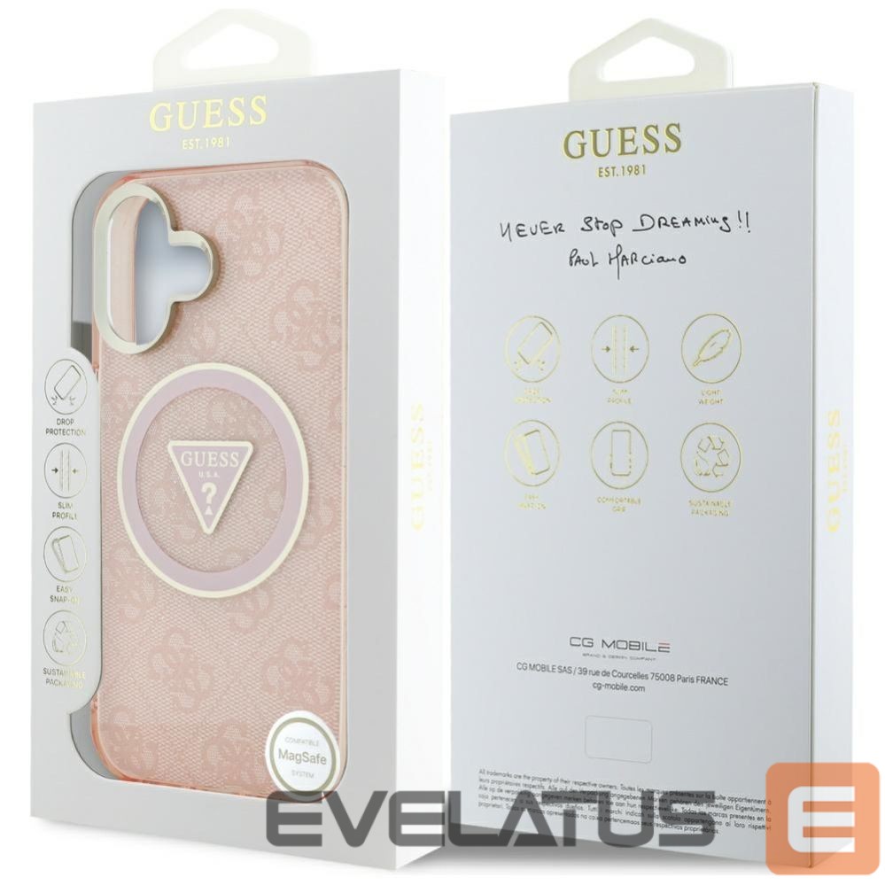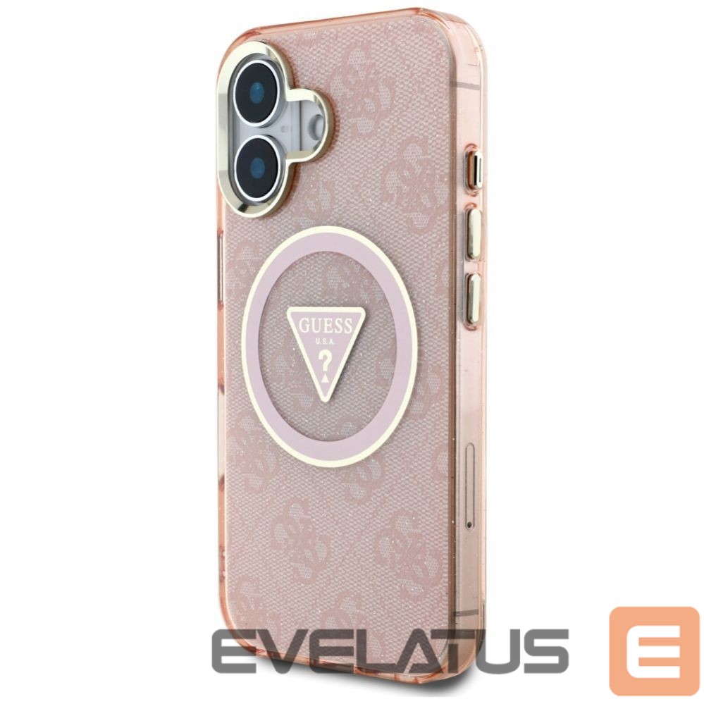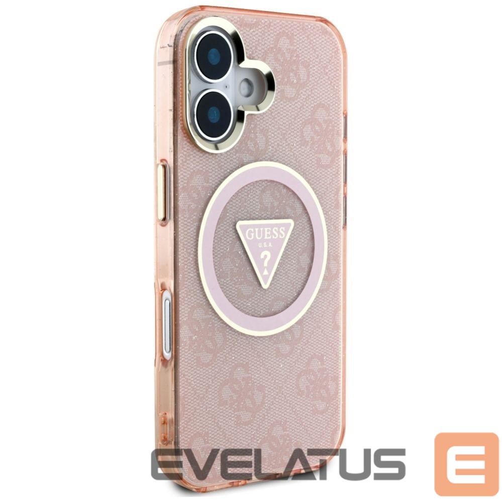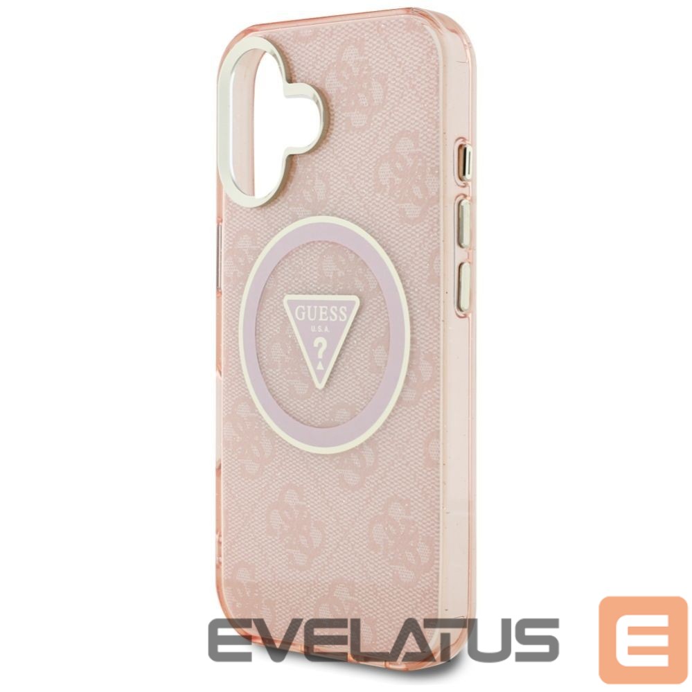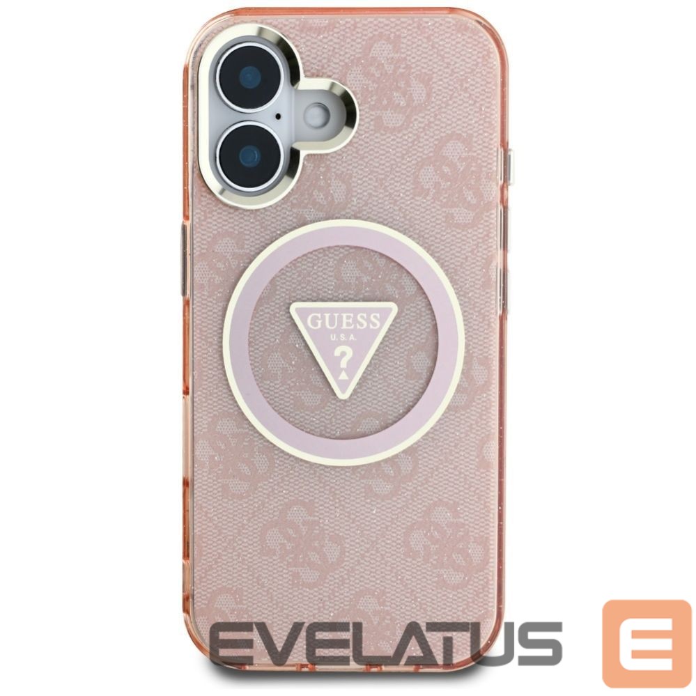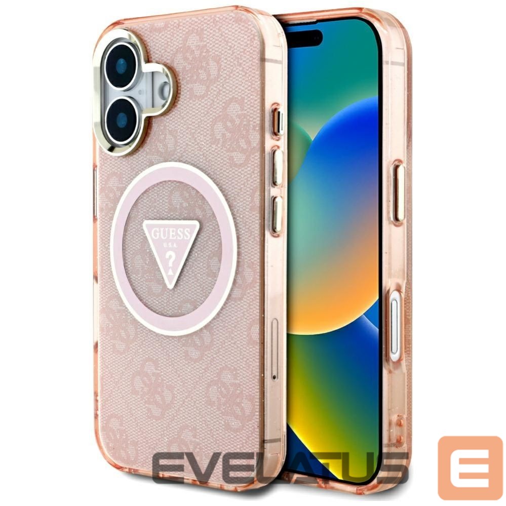 Citas preces Guess Guess IML Metal Glitter 4G Circle Triangle MagSafe case for iPhone 16 – pink