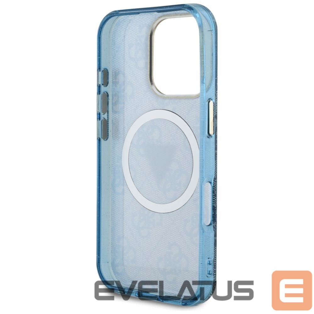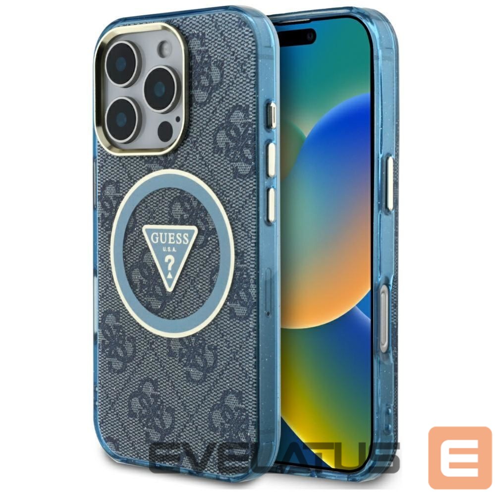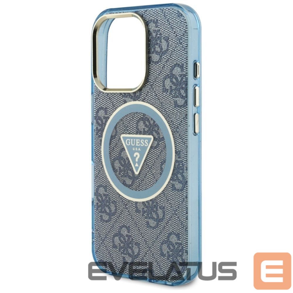 Citas preces Guess Guess IML Metal Glitter 4G Circle Triangle MagSafe Case for iPhone 16 Pro – Blue
