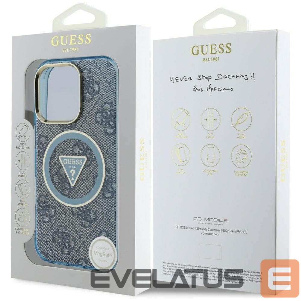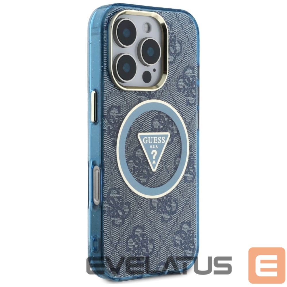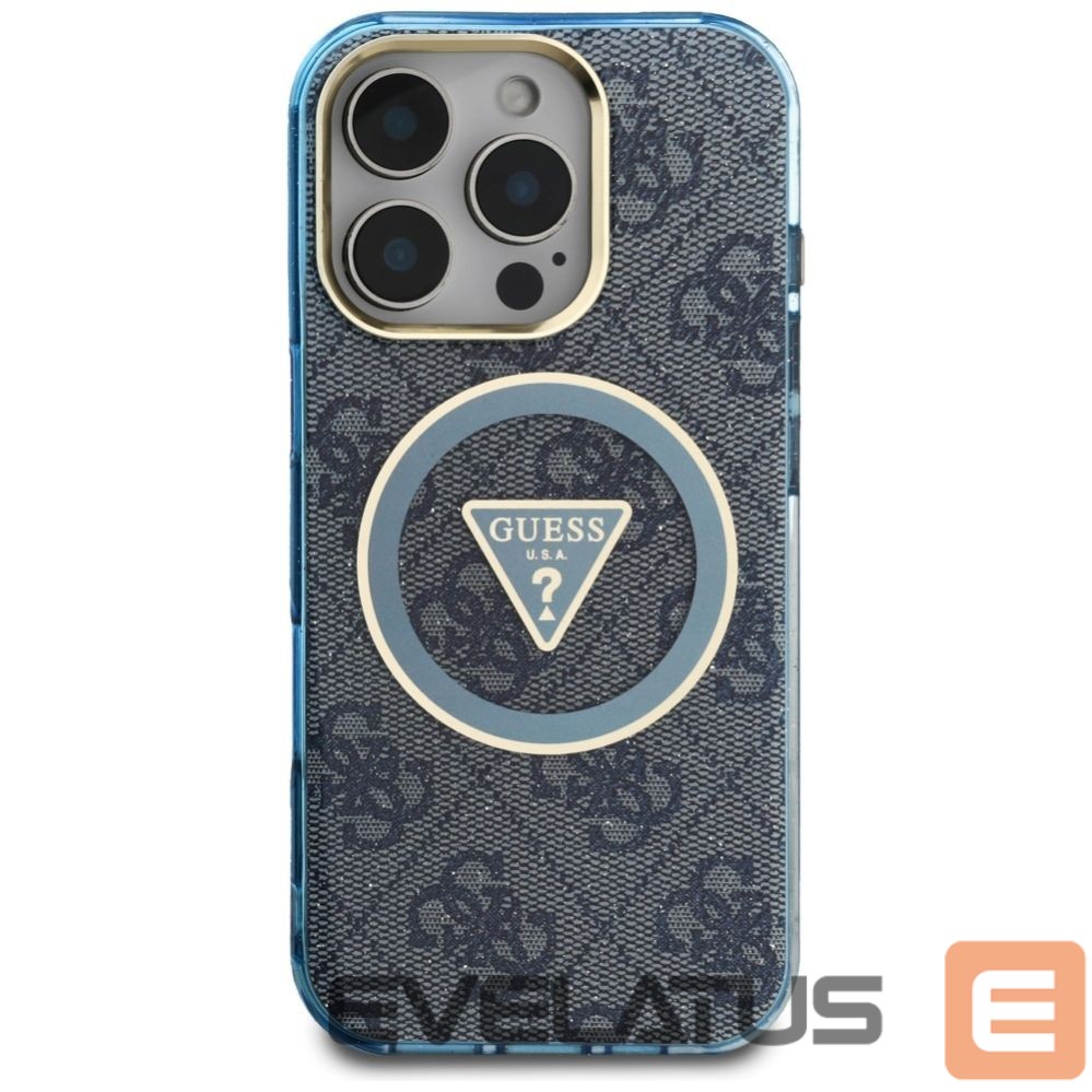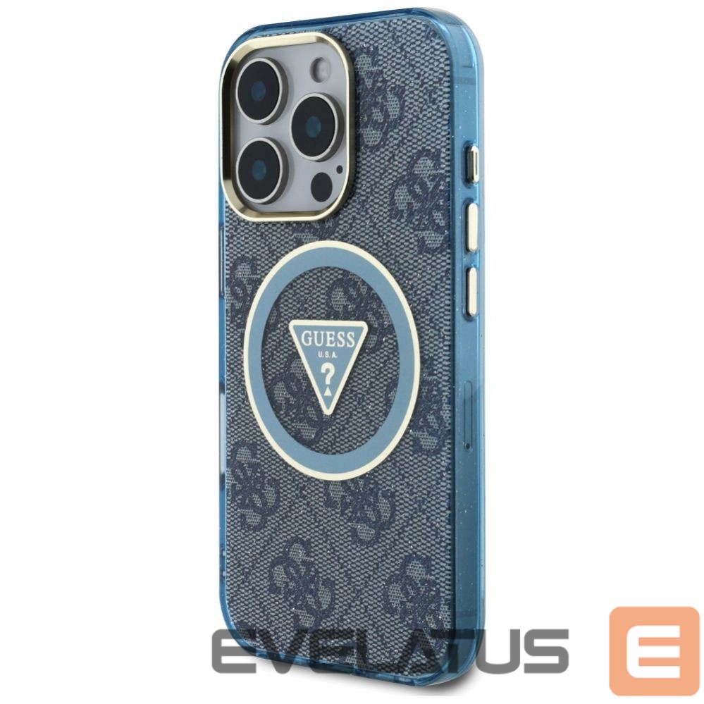 Citas preces Guess Guess IML Metal Glitter 4G Circle Triangle MagSafe Case for iPhone 16 Pro – Blue