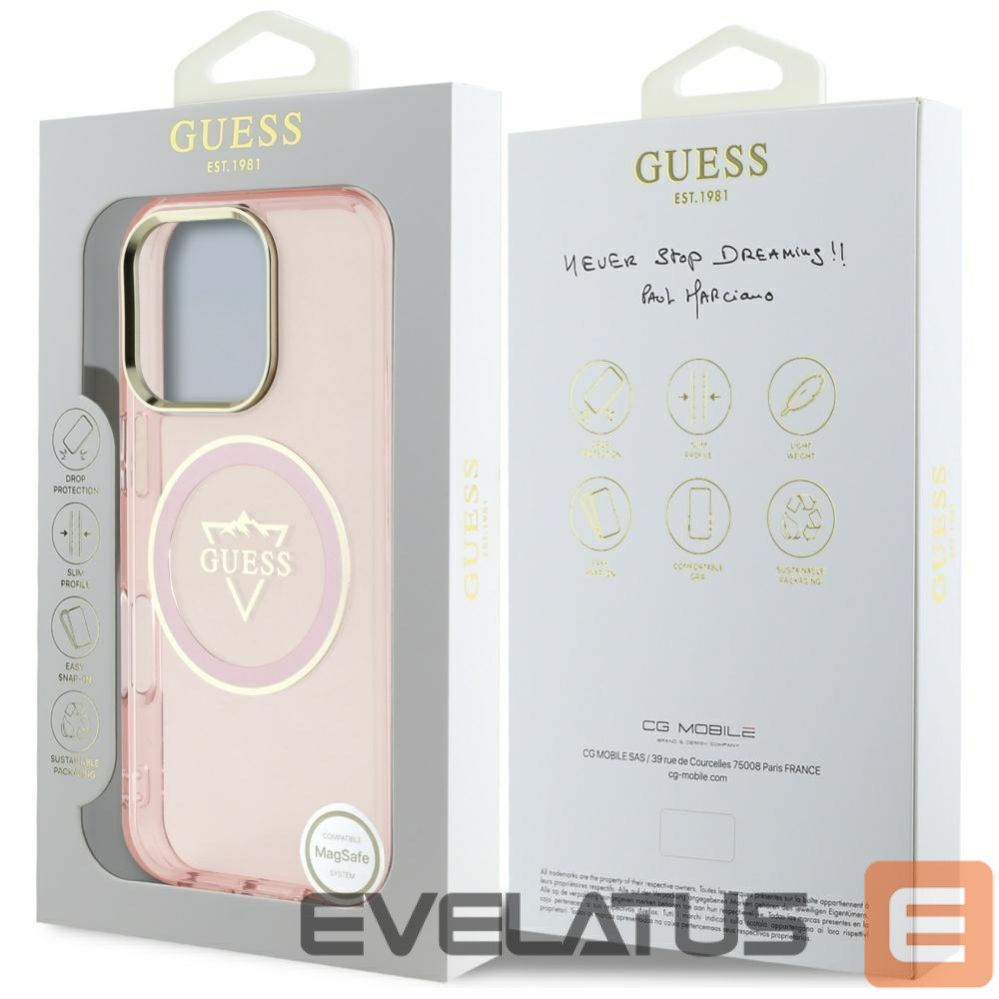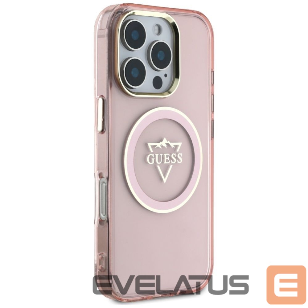 Citas preces Guess Guess IML Metal Mountain Logo MagSafe iPhone 16 Pro Max Case – Pink