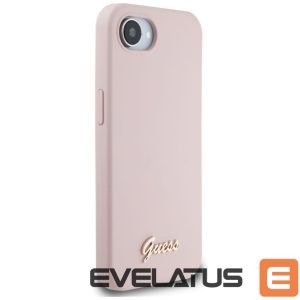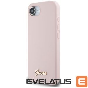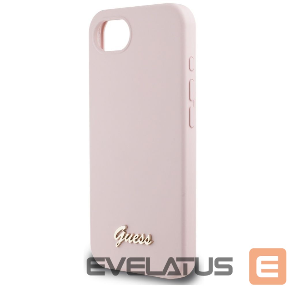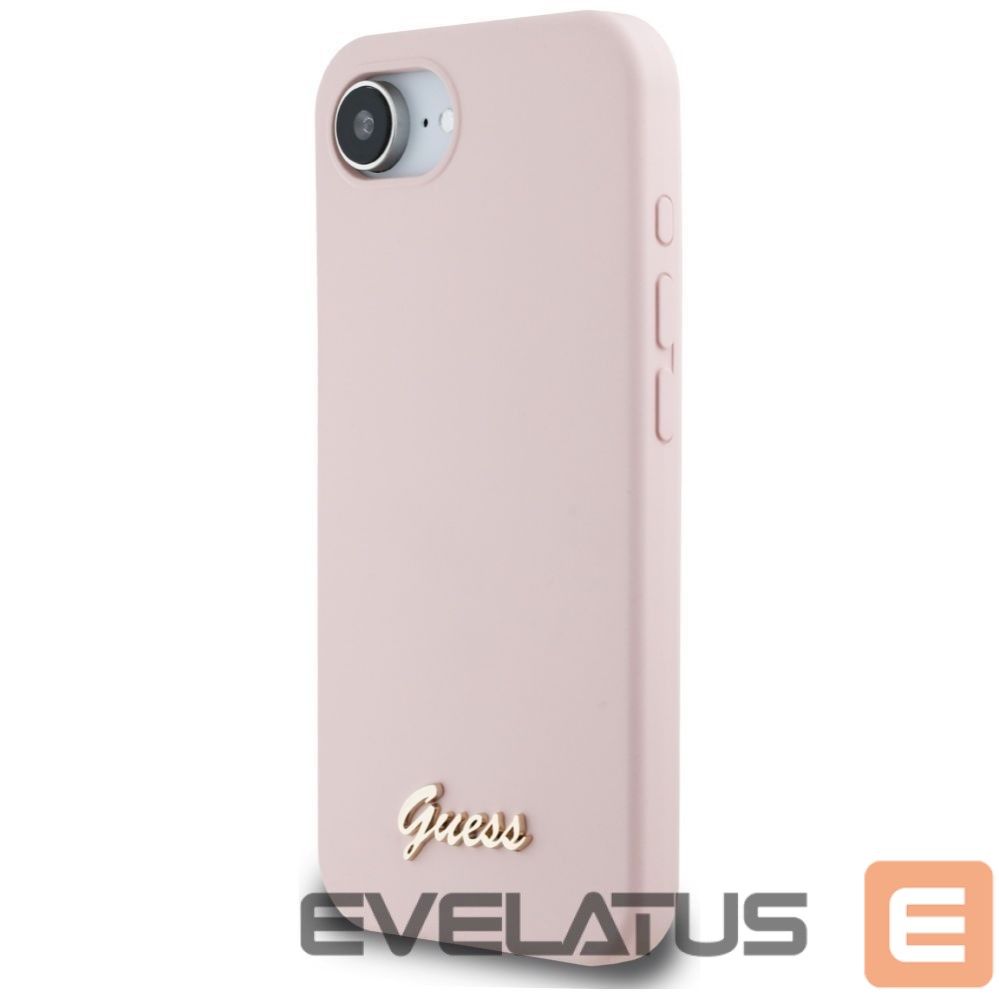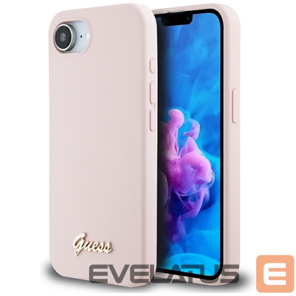 Citas preces Guess Guess Silicone Script Metal Logo MagSafe iPhone 16e Case – Pink