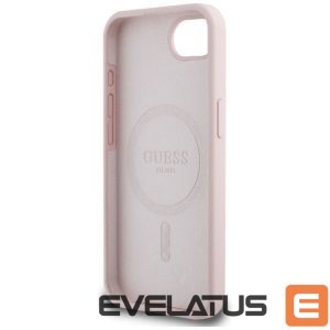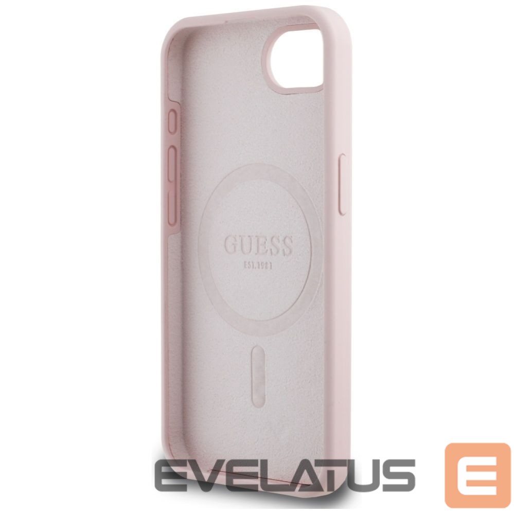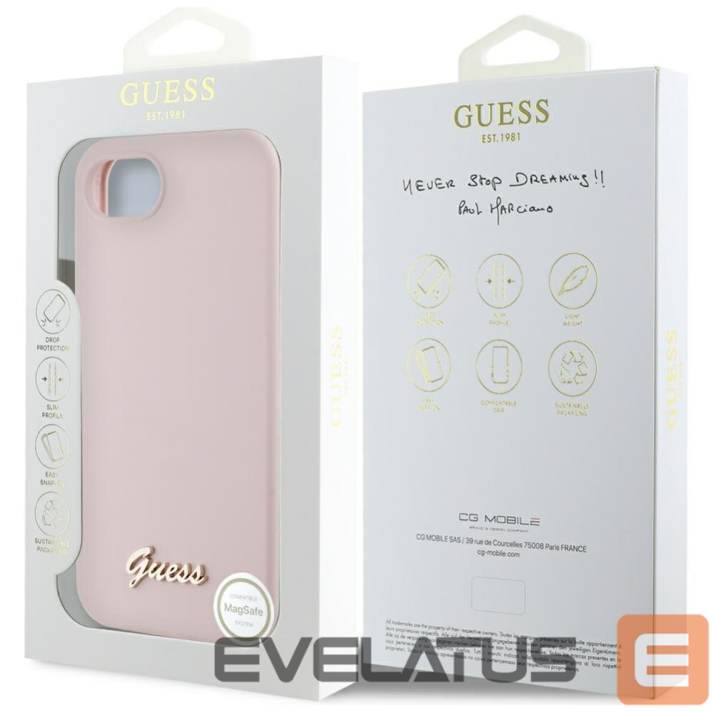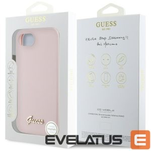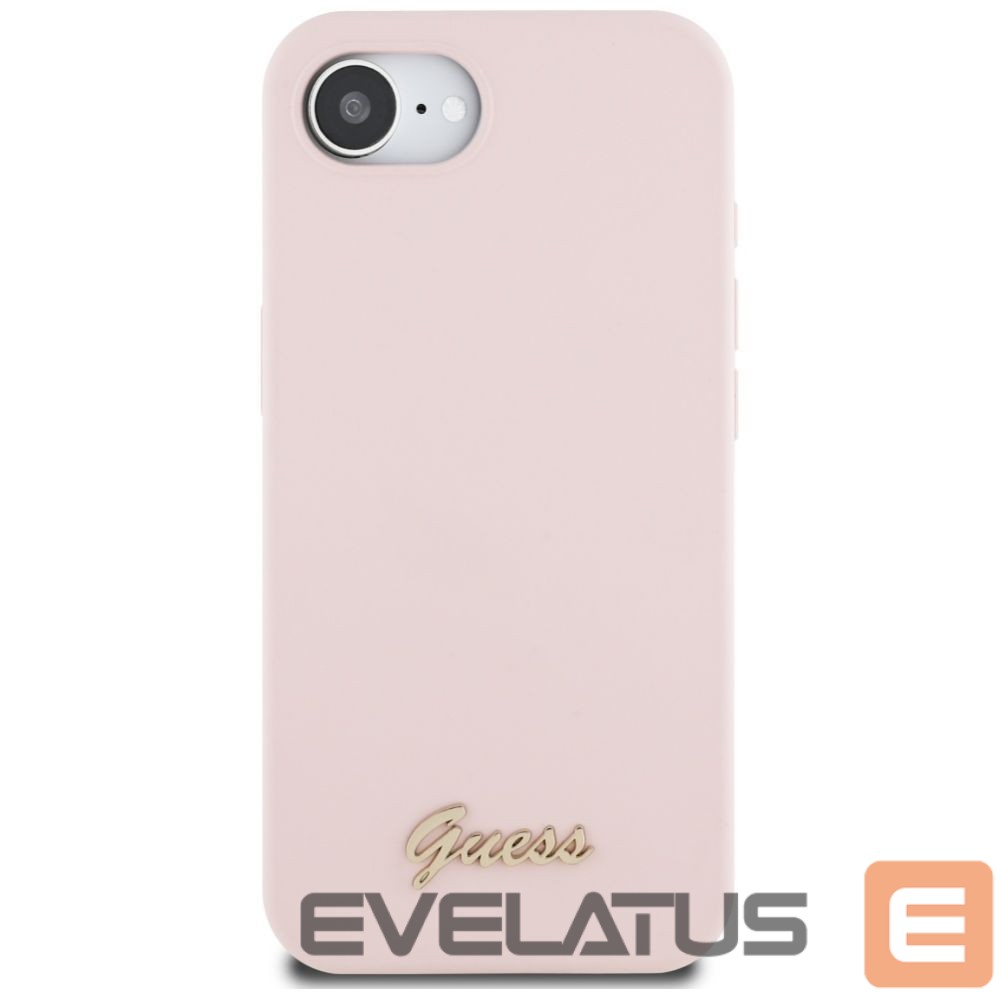 Citas preces Guess Guess Silicone Script Metal Logo MagSafe iPhone 16e Case – Pink