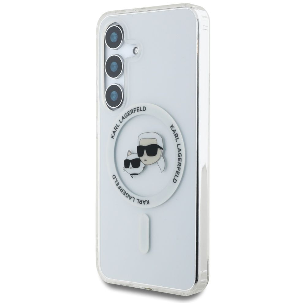 Citas preces Karl Lagerfeld Case Karl Lagerfeld Button Karl & Choupette Heads Printed Logo MagSafe Samsung Galaxy S25 Plus white