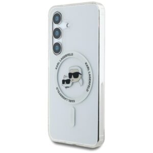 Citas preces Karl Lagerfeld Case Karl Lagerfeld Button Karl & Choupette Heads Printed Logo MagSafe Samsung Galaxy S25 white