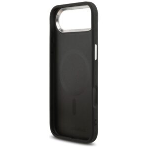 Plecki zdobi charakterystyczny metalowy pin Choupette, nadający akcesorium unikalnego, modowego charakteru. Całość dopełniają aluminiowa ramka aparatu oraz przyciski boczne w srebrnym kolorze, podkreślające luksusowy charakter produktu. Na pierścieniu MagSafe znajduje się napis „KARL LAGERFELD”, który dodaje elegancji i wyjątkowego stylu.