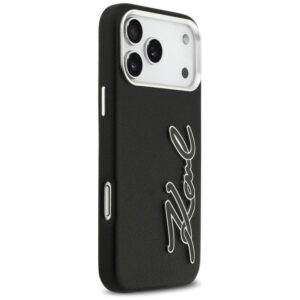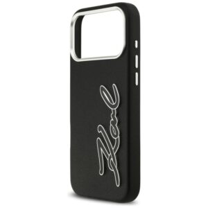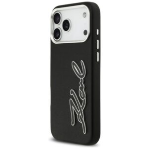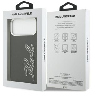 Citas preces Karl Lagerfeld Karl Lagerfeld FW Grained Signature Logo Case for iPhone 17 Pro Max – Black