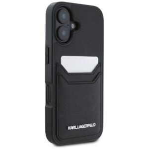 Citas preces Karl Lagerfeld Karl Lagerfeld HC Grained PU Cardslot Metal Elong iPhone 16 Case – Black