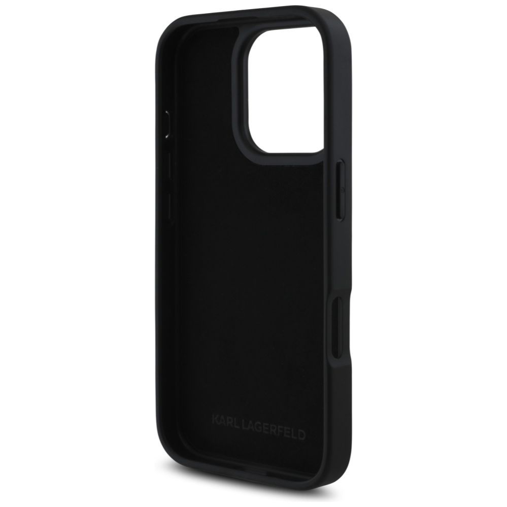 Citas preces Karl Lagerfeld Karl Lagerfeld HC Grained PU Cardslot Metal Elong iPhone 16 Pro Case – Black