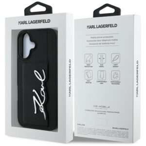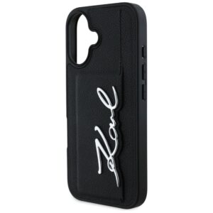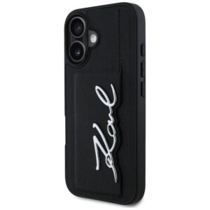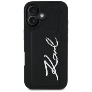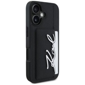Citas preces Karl Lagerfeld Karl Lagerfeld HC Grained PU Cardslot Metal Signature iPhone 16 Case – Black