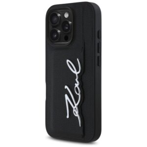 Citas preces Karl Lagerfeld Karl Lagerfeld HC Grained PU Cardslot Metal Signature iPhone 16 Pro Max Case – Black