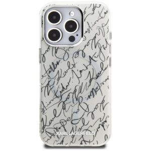 Citas preces Karl Lagerfeld Karl Lagerfeld IML Karl Script Pattern MagSafe Case for iPhone 16 Pro Max – White