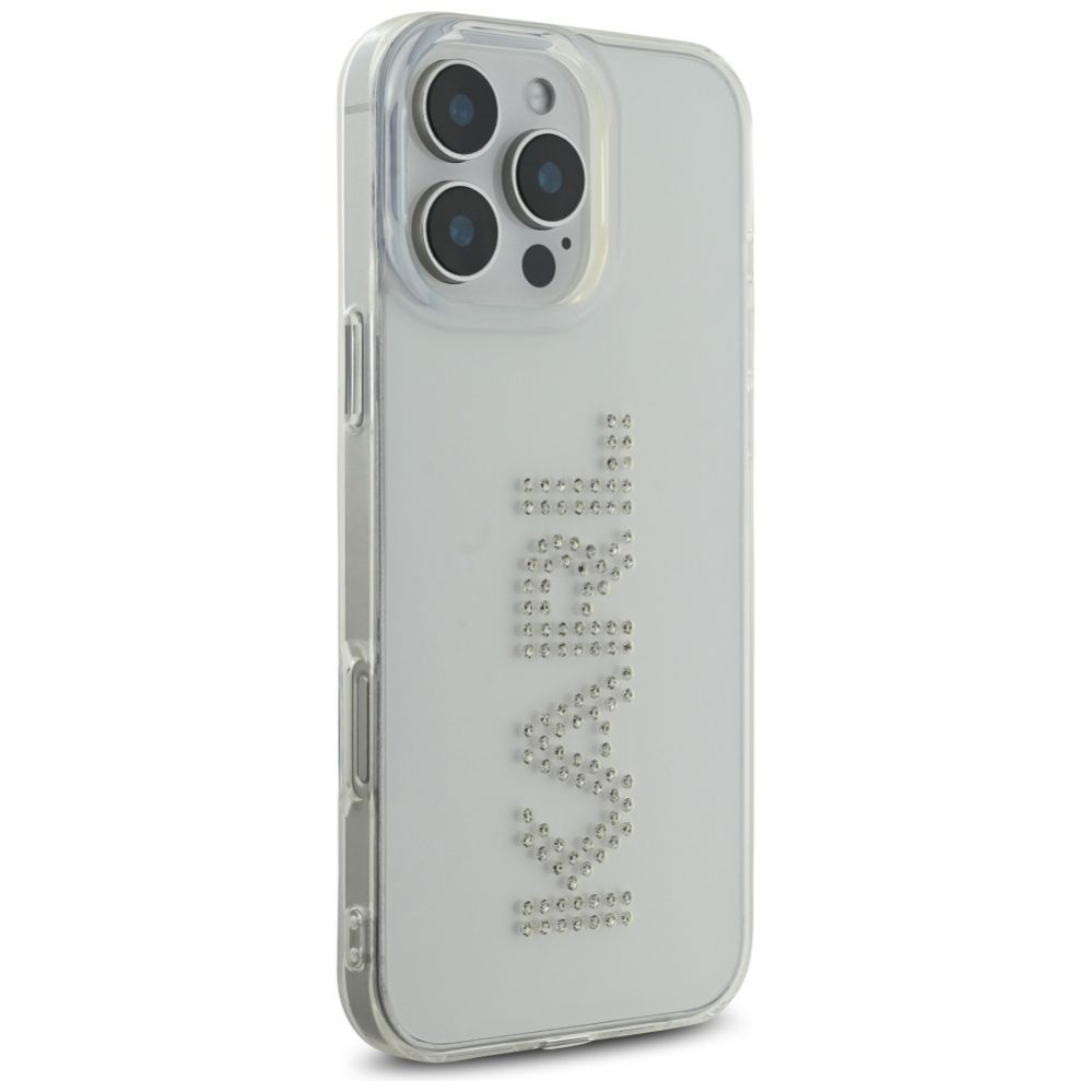 Citas preces Karl Lagerfeld Karl Lagerfeld IML Rhinestones Logo iPhone 16 Pro Case – Clear