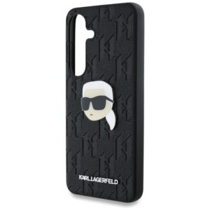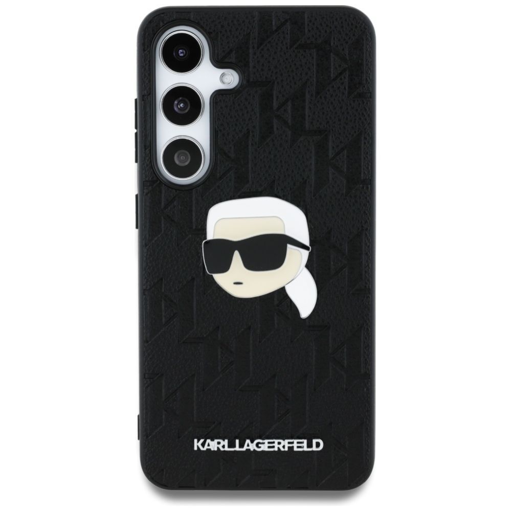 Citas preces Karl Lagerfeld Karl Lagerfeld Leather Monogram Pin Logo Karl Head Samsung Galaxy S25 Case Black