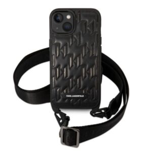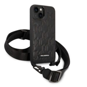 Citas preces Karl Lagerfeld Karl Lagerfeld Monogram Plaque Logo Strap Case for iPhone 14 / 15 / 13 6.1" – Black