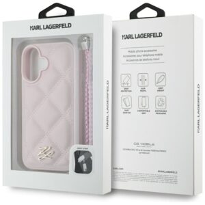 Citas preces Karl Lagerfeld Karl Lagerfeld Quilted Initial Logo & Chain Strap iPhone 16 Case – Pink