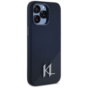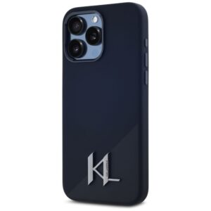 Citas preces Karl Lagerfeld Karl Lagerfeld Silicone Shadow Metal Initial MagSafe Case for iPhone 15 Pro Black