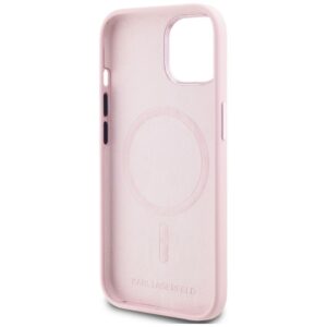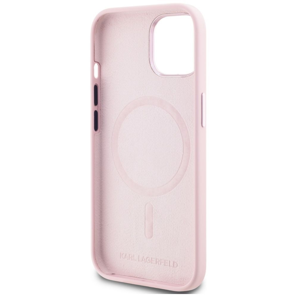 Citas preces Karl Lagerfeld Karl Lagerfeld Silicone Shadow Metal Initial MagSafe iPhone 15 Case Pink