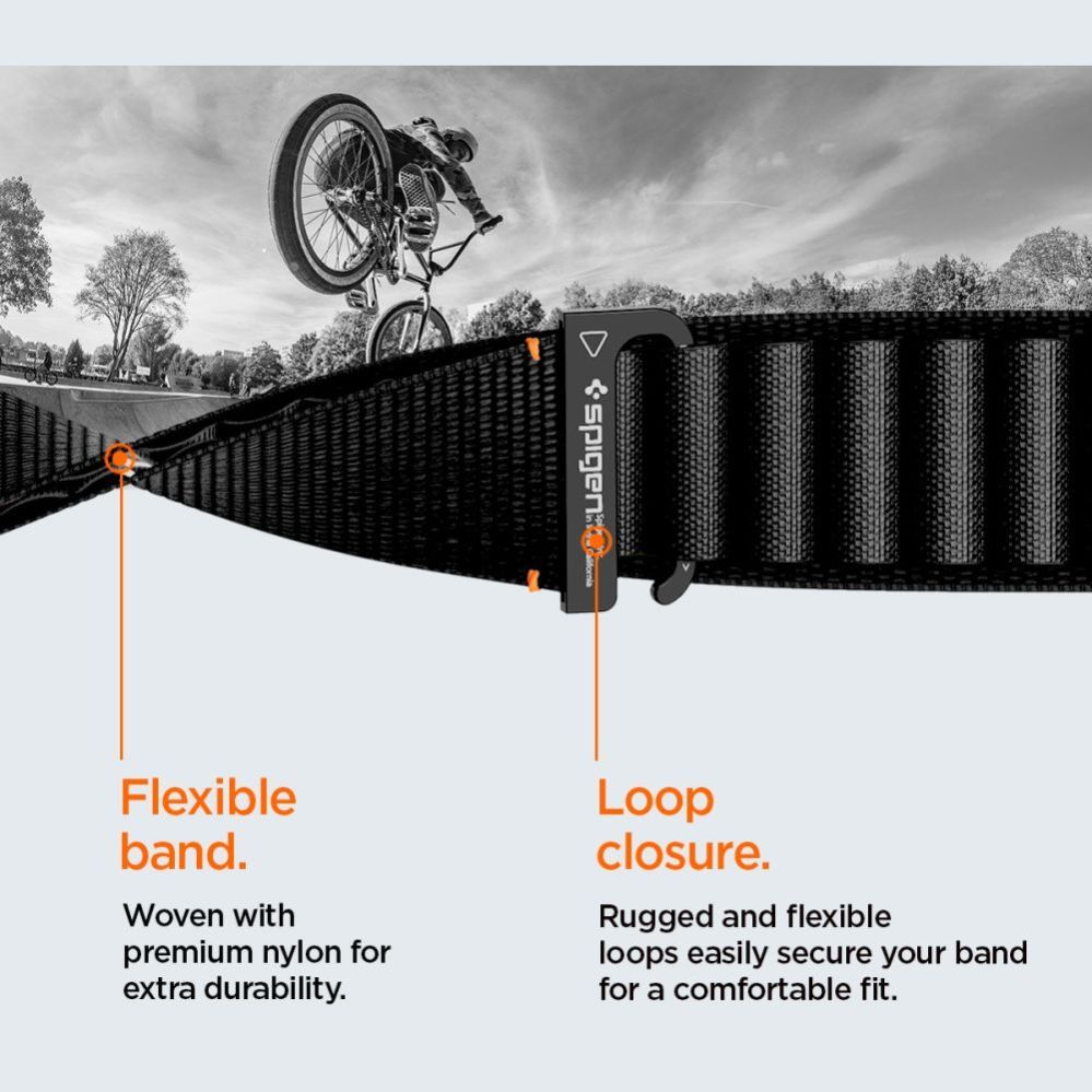 The Spigen WBF1 strap is an elegant and modern accessory made of durable nylon that combines a sporty character with minimalist style. Equipped with a sturdy hook-and-loop buckle and a loop closure, it ensures a secure and stable fit during everyday use and intense activities.