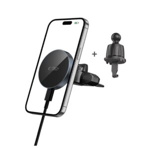 The Tech-Protect MM15W-V5 car mount is an innovative solution that allows you to safely and conveniently mount your MagSafe-enabled smartphone in your car. Two mounting options are available: in the CD slot or in the air vent, allowing you to customize the installation to your preferences.