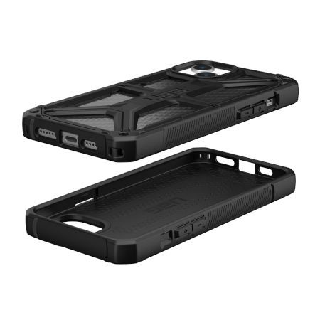 TOTAL CUSHIONING The UAG Monarch construction is composed of 5 layers that, when combined, create a synergistic mechanism for total shock absorption. This means that when the phone in the Monarch case collides with a hard surface – even from a height of 6 m! – the entire impact force is distributed on the housing surface, and the device itself remains intact. THE STRONGEST UAG What makes Monarch one of the strongest series of the UAG brand is its innovative construction, composed of as many as 5 protective layers: 1. The hard outer shell of the shield absorbs the force of the impact, blocking the penetration into the deeper layers of the casing 2. Top-grain leather of the highest quality, solid leather incorporated into the the construction of the casing ensures its strength and long life 3. Polycarbonate plate – this part gives stiffness to all other layers 4. Metal elements – metal screws connect and secure all layers of the casing 5. Impact-resistant elastic rubber TPU rubber provides shock absorption and minimizes shocks NO SCRATCHES No worries place and move the phone on a desk, table or other flat surface. Thanks to the raised rubber edges around the screen and camera, Monarch protects them against scratches. COMFORT AND SECURITY The three-dimensional pattern on the edges of the case is designed to minimize slippage so that the smartphone can be held securely in your hand. Therefore, Monarch guarantees a secure grip and comfort of using the phone even in difficult conditions. PORTS AND BUTTONS The buttons and mute switch on the phone are protected against dust by precisely designed, movable housing elements that ensure comfortable use of the phone's functions. Compatibility with wireless charging PRACTICAL DESIGN Rubber reinforcements on the edges of the case create strong accents typical of the UAG brand and protect the phone's most vulnerable parts. CERTIFIED PROTECTION Compliance with the MIL STD 810G 516.6 military standard, specifying the degree of shock resistance in the event of a fall.