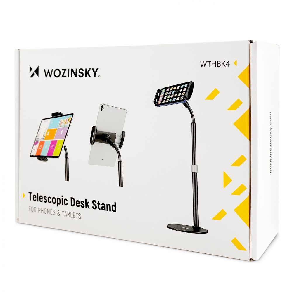 Are you looking for a universal and easy-to-use tablet or phone stand for your desk? Meet Wozinsky WTHBK4. It is a comfortable and stable gadget that will work both in the office and at home . It was made of durable materials, it will hold smartphones and tablets with a diagonal of 4.7-11 inches . It has a stable, well-balanced base and strong jaws that can rotate a full 360 degrees. The Wozinsky WTHBK4 tablet and phone stand will adjust to your height – it has an adjustable, telescopic arm.