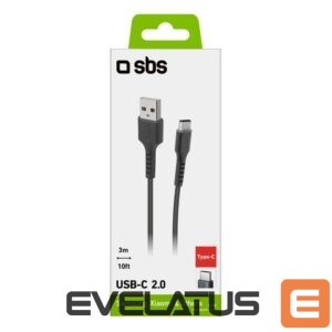 Kabelis SBS SBS TECABLETC3MTK USB-A – USB-C Cable 3m – Black