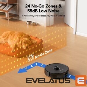- Pielāgojamas Zonas: Caur lietotni varat iestatīt “No-Go” (aizliegtās) zonas un virtuālās sienas, lai robots neiebrauktu vietās, kur stāv mājdzīvnieku trauki vai vadi.