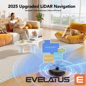 - LDS 9.0 LiDAR Navigācija: Lāzera sistēma skenē telpu 360 grādos, ļaujot robotam darboties pilnīgā tumsā un izveidot precīzu maršrutu (SLAM algoritms), lai nodrošinātu 100% pārklājumu bez haotiskas maldīšanās.