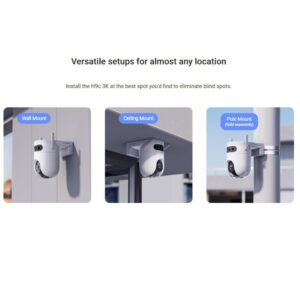 Iepazīstinām ar EZVIZ H9C CS-H9c Divu Objektīvu Ārējo Pan & Tilt Kameru, mūsdienīgu drošības risinājumu, kas paredzēts, lai nodrošinātu vispārīgu uzraudzību ar modernām automatizācijas funkcijām. Aprīkota ar diviem 5MP objektīviem, kas nodrošina 3K izšķirtspēju, šī kamera nodrošina nevainojamu attēlu skaidrību un plašu redzes lauku. Tās inteliģentais dizains ļauj nevainojami uzraudzīt lielākas teritorijas, padarot to par ideālu izvēli jūsu īpašuma aizsardzībai.
