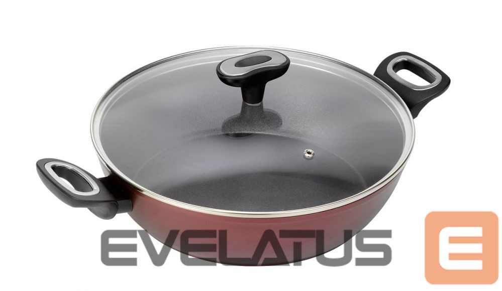 Dziļā pannā 24 cm. ar rūdīta stikla vāku. Augstums 6,8 cm. Tilpums 2,4 L